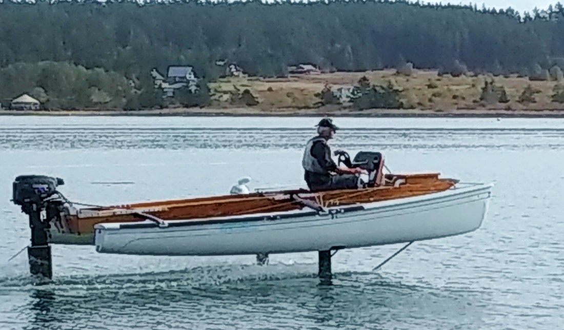 But quiet, and unassuming. Which is why I didn’t know he had converted a catamaran sailboat to an electrically powered hydrofoil until, well, I saw him buzzing by. Quietly.