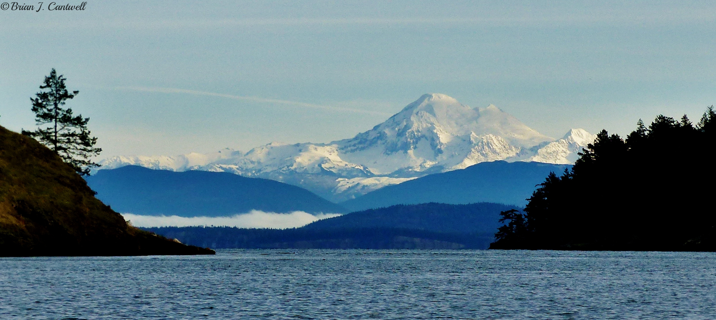 Mount Baker, framed by misty Cascade foothills, wears a fresh mantle of snow as seen from Lopez Sound on January 9. Views like this are balm to the soul when it comes time to turn off the Tweets.