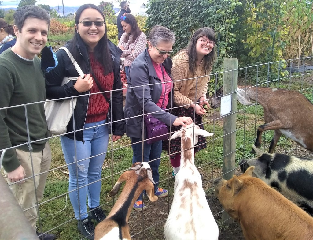 We left with bagfuls of tomatoes, butternut and delicata squash, eggplant, kale, and fresh herbs. Most of it went into our dinner that evening, all grilled outside and served alongside fresh wild-caught coho salmon. Our pre-dinner happy hour featured tortilla chips and homemade guacamole washed down with mojitos custom-made by Kevin, a former bartender, using fresh-picked mint from the farm.