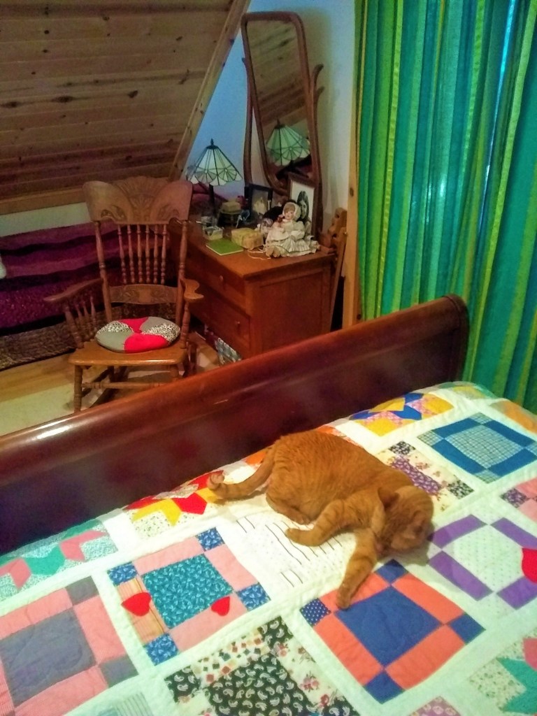But now I’m the recipient of this beautiful piece of handwork, based on 100-year-old quilt squares sewn by a grandmother I never knew: a school teacher who on her own, as a single woman, homesteaded a parcel of South Dakota prairie before marrying my grandfather. It’s a perfect addition to the loft of the Nuthatch, already furnished with an antique rocking chair and a rustic lowboy dresser that belonged to Grandma Sadie.