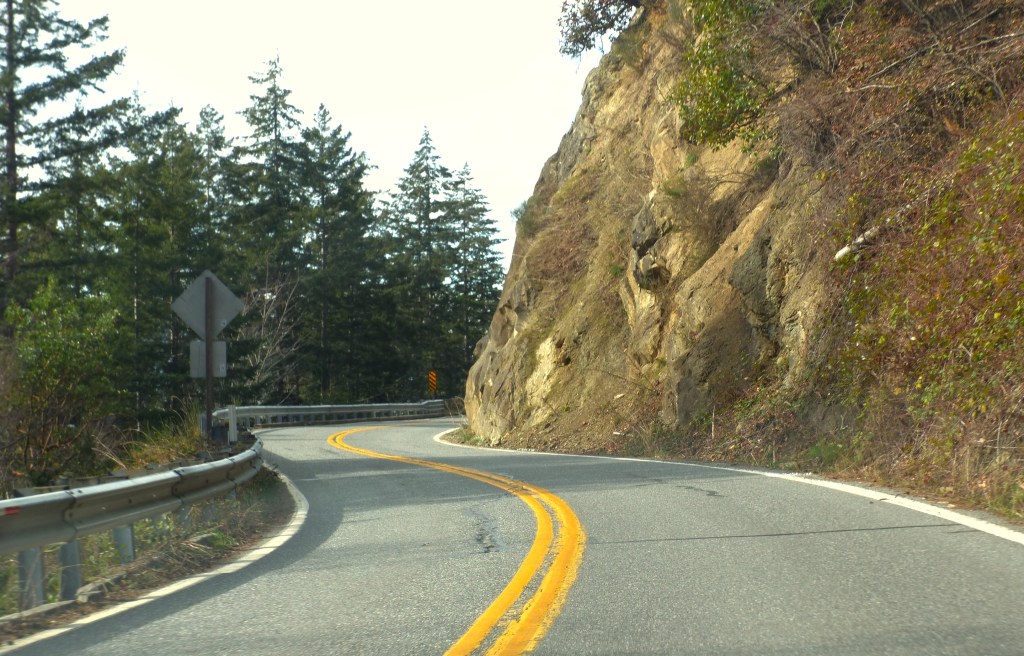 I got a pleasant sunny day for this trip, and I found time to get off Interstate 5 and chug northward on scenic and serpentine Chuckanut Drive, the original northbound road that skirts the base of the Chuckanut Mountains, a foothill spur that geologists say is the only place the Cascade range meets the sea. It adds only about 15 minutes to the trip, but it’s a superb quarter hour. Starting from the Samish Flats, where I saw a fluttering flurry of snow geese, my red Civic snaked along boulder-strewn cliffs, passed chattering waterfalls and skirted moody panoramas of islands and saltwater.