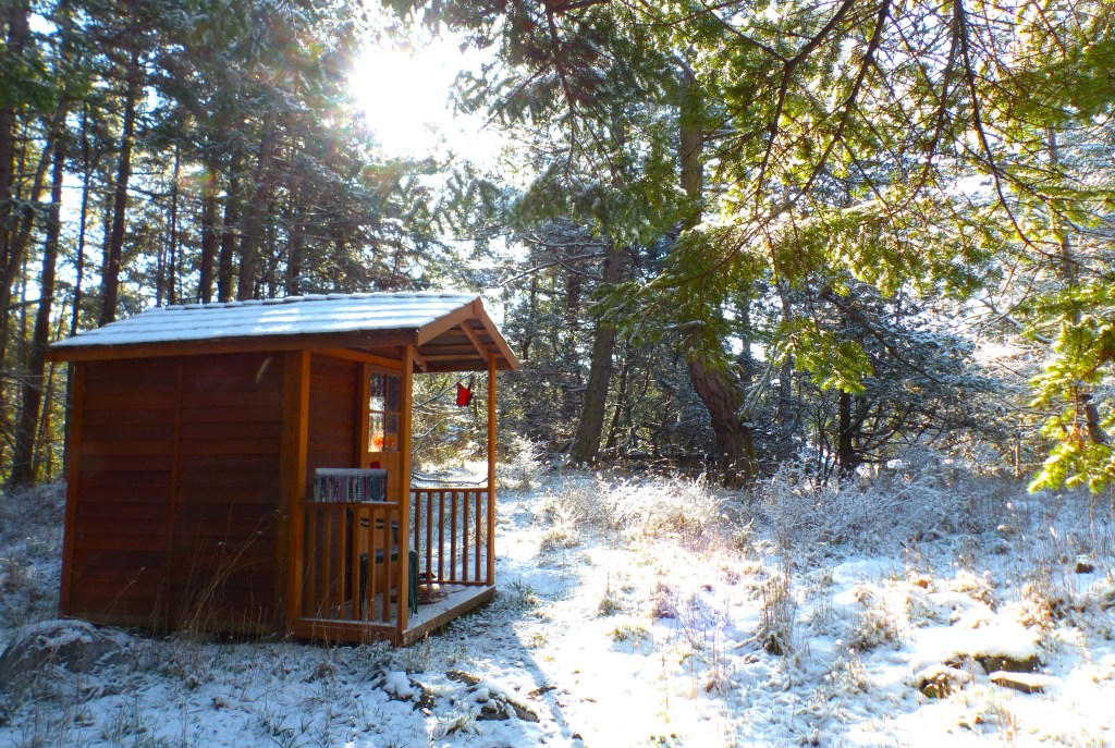 Wee Nooke needed a new tree. We originally erected the 36-square-foot cedar shed in the shade of a sizable shore pine that leaned artfully over its roof until the pine blew down a few winters ago. Had the tree fallen about 10 inches to the left my Nooke would have been transformed from man cave to matchsticks. If the Charlie Brown tree ever gets big and old enough to blow down, I am confident I won’t be around to be squished. Always look on the bright side of life, I say.