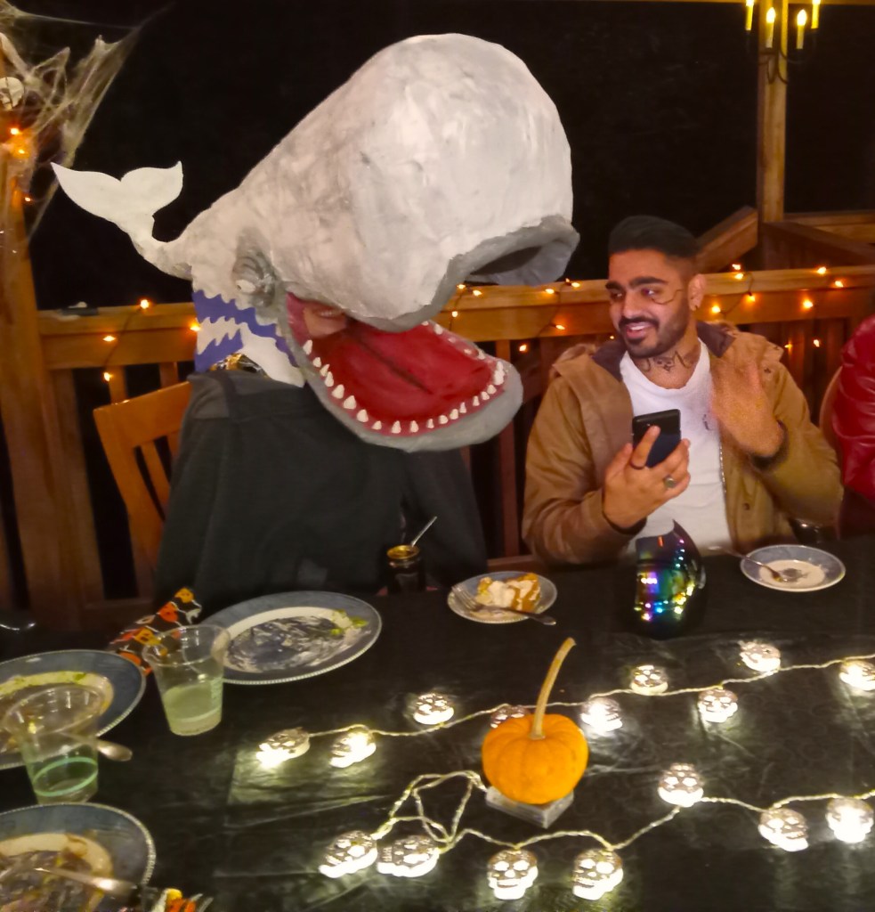 Competition was stiff, including the two “forensics investigators” who left numbered evidence markers all over the house; the sister-in-law, her daughter and partner who all came dressed as the dad of the family, who has come to the party for years without wearing a costume; our hosts’ grandson who piloted a child-size submersible research vessel created on a 3-D printer by his Boeing-mechanic father; and many more.