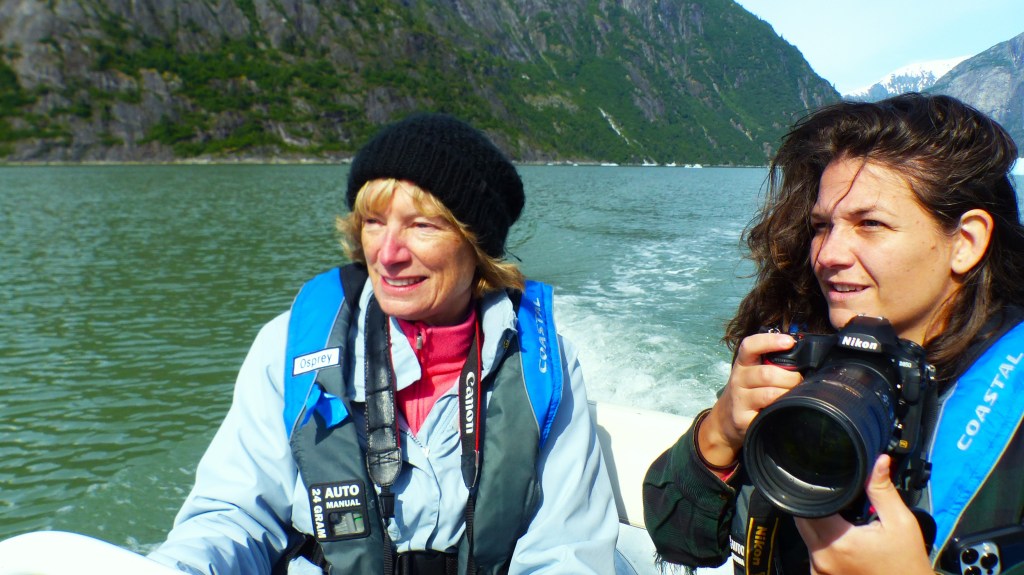 Barbara Marrett, left, and Dana Halferty in our dinghy on Tracy Arm.
