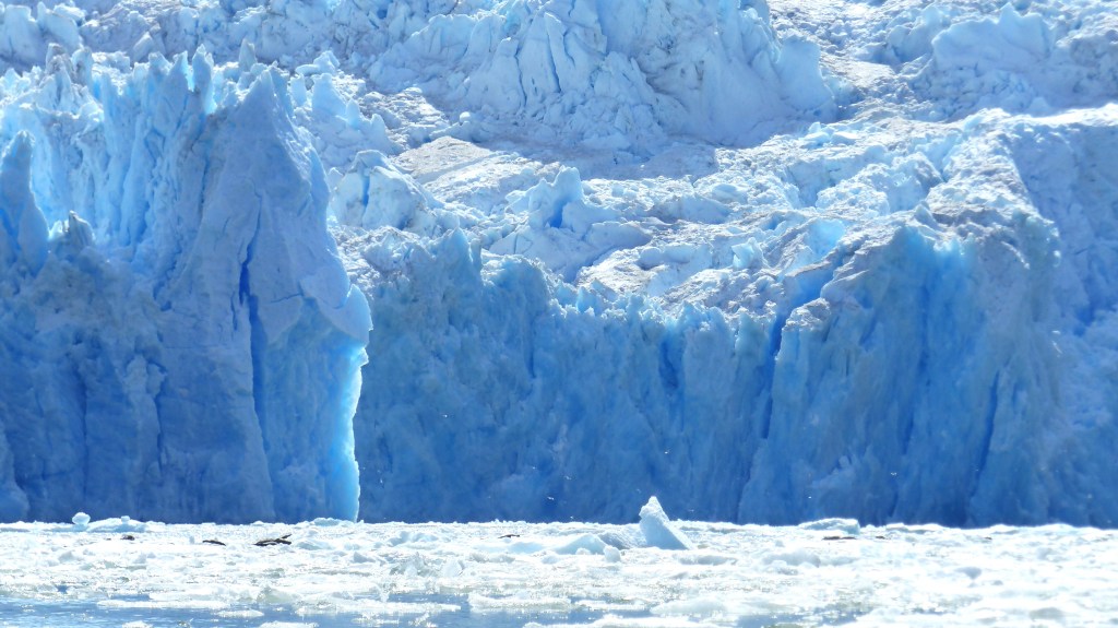 At South Sawyer Glacier at the head of Tracy Arm, you can see where the color “ice blue” originated.