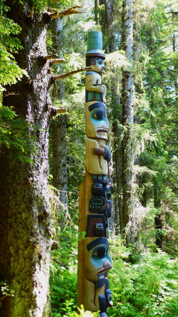 (1) The lovely Totem Trail in Sitka National Historical Park. We saw totem poles of many designs nestled among pristine forest along a wide, graveled path edging the scenic shoreline.