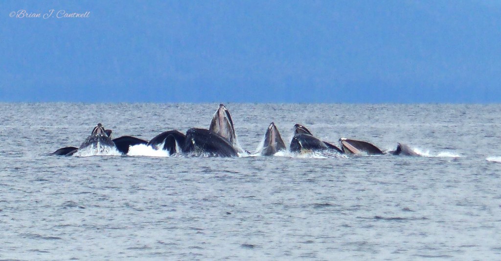 As the whales concluded their dives, we heard a whale call, like a mooing Jersey cow mated with a bassoon. Chilling. Then, finally, a whale call like a ship’s foghorn echoed off the forested hills. Wow.